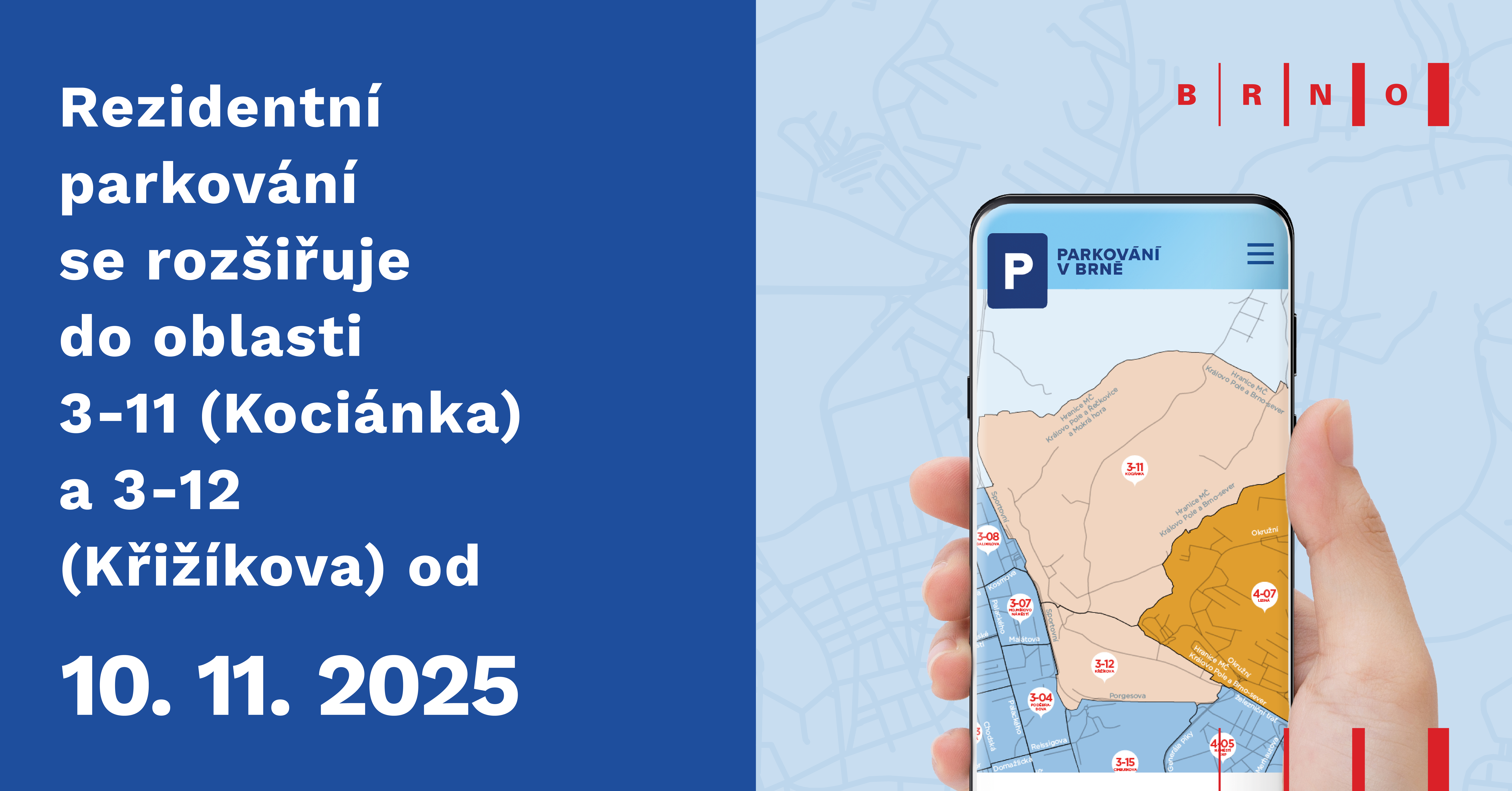 Systém rezidentního parkování se od 10. listopadu 2025 rozšiřuje do oblastí 3-11 (Kociánka) a 3-12 (Křižíkova), která spadá do návštěvnické zóny C. Regulace zde platí jen přes noc (od 17:00 do 6:00).