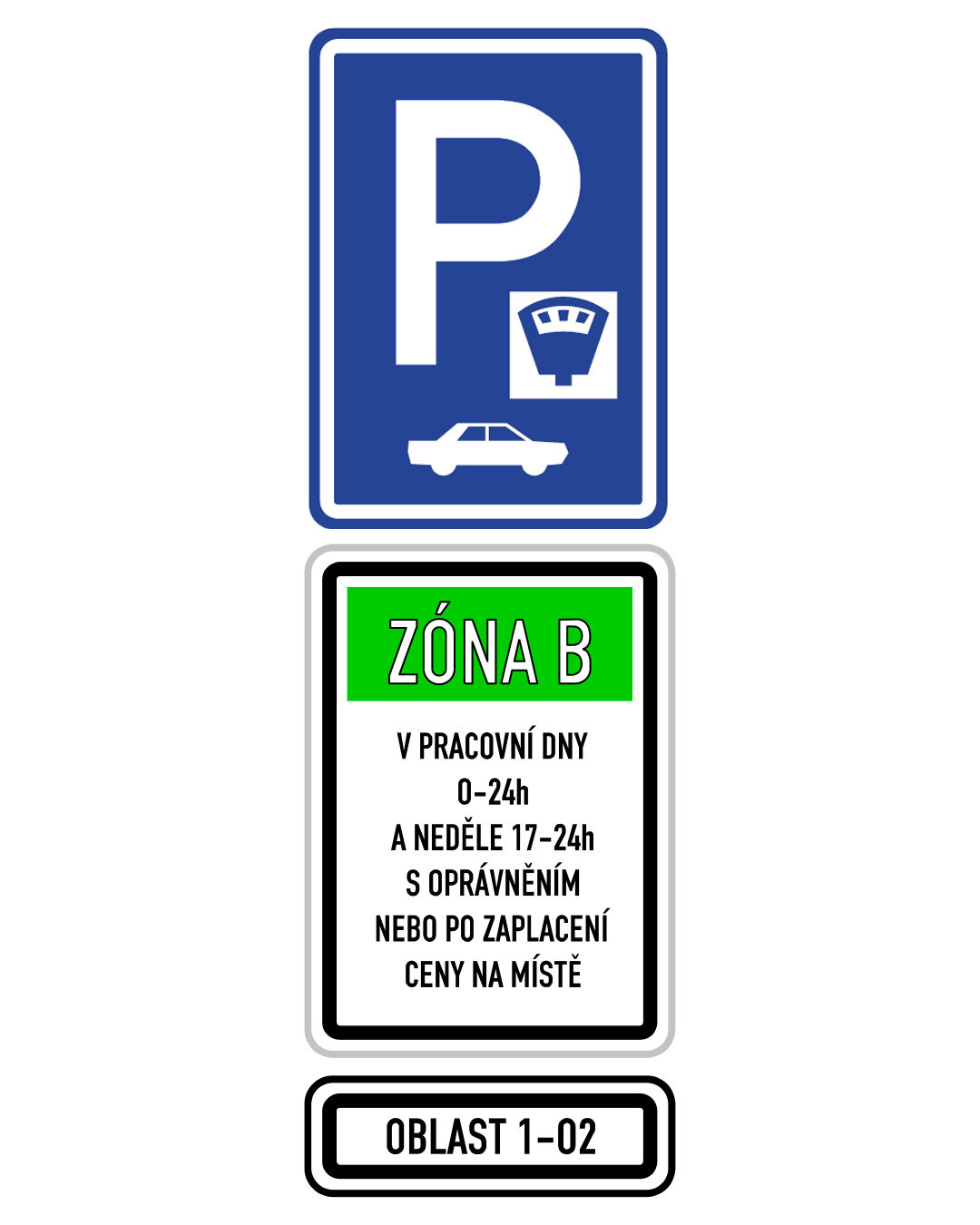 Nedělní regulace v zóně B začne platit až po dokončení výměny značení ve všech oblastech od 1. 6. 2026 (první regulovaná neděle 7. 6. 2026). V současné době probíhá postupná výměna dopravního značení v zóně B, která souvisí s rozšířením doby regulace o nedělní večery (17:00–24:00). Harmonogram výměny podle jednotlivých oblastí jsme zveřejnili v